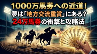 地方競馬【夢馬券の狙い目】1000万馬券への近道は「地方交流重賞」にある?24万馬券の衝撃と攻略のヒント 【夢馬券の狙い目】なぜ地方交流重賞は荒れるのか?24万馬券が飛び出した川崎記念を例に、砂の厚さやナイター競馬など、JRA馬が苦戦する要因を解説。1000万馬券を狙う「おじさん」流の穴馬券攻略コラム。 2025.12.24地方競馬競馬コラム馬券