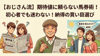 競馬コラム【競馬歴3年のおじさん流】初心者でも迷わない!「期待値」に頼らない馬券の選び方と買い目の絞り込み術 【競馬歴3年のおじさん直伝】「期待値」は計算できない?パチスロ経験から導き出した独自の馬券哲学と、着差・コース適性・騎手などで絞り込む具体的な買い目選び術を解説。初心者でも納得して馬券が買えるようになるヒントが満載です。 2025.12.24競馬コラム馬券